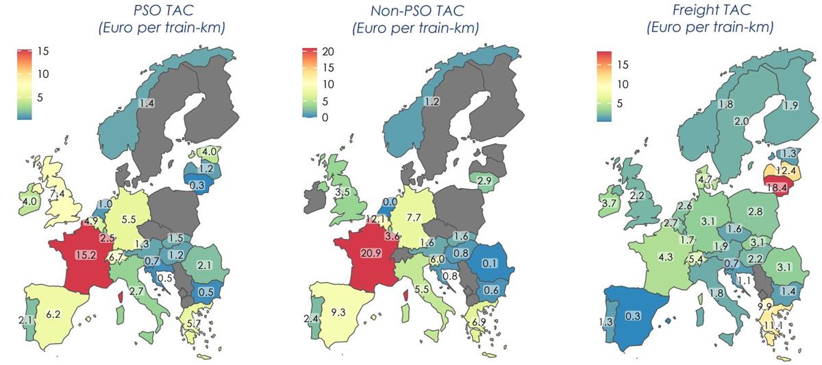 Resultatene i rapporten viser at det er store forskjeller i avgiftene som jernbaneforetakene må betale for å bruke spor innad i Europa. Frankrike har de høyeste avgiftene. Persontransportselskapene betalte i gjennomsnitt 5,6 euro per togkilometer. Godsselskapene betalte i gjennomsnitt 2,8 euro per togkilometer. Infrastrukturavgiftene i Norge var godt under det europeiske gjennomsnittet, hvor persontransportselskapene og godstogselskapene betalte henholdsvis gjennomsnittlig 1,4 euro og 1,8 euro per togkilometer.