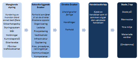 - Identifisere bakenforliggende årsaker (prosedyrer, opplæring, styring, organisering osv.)